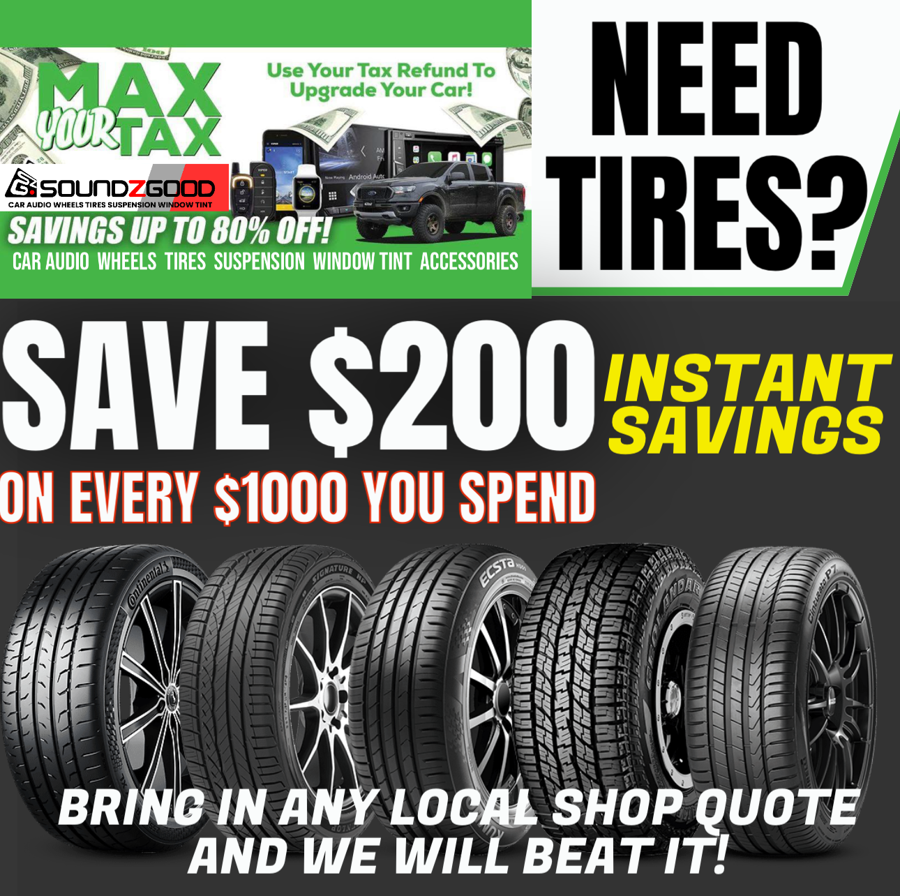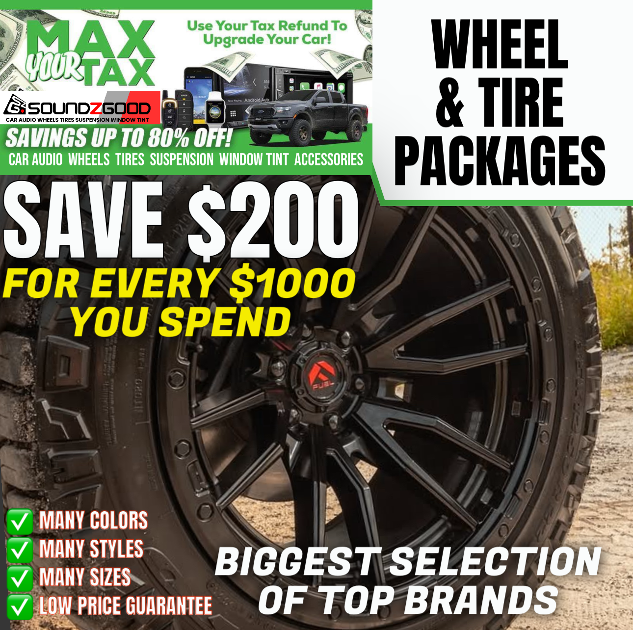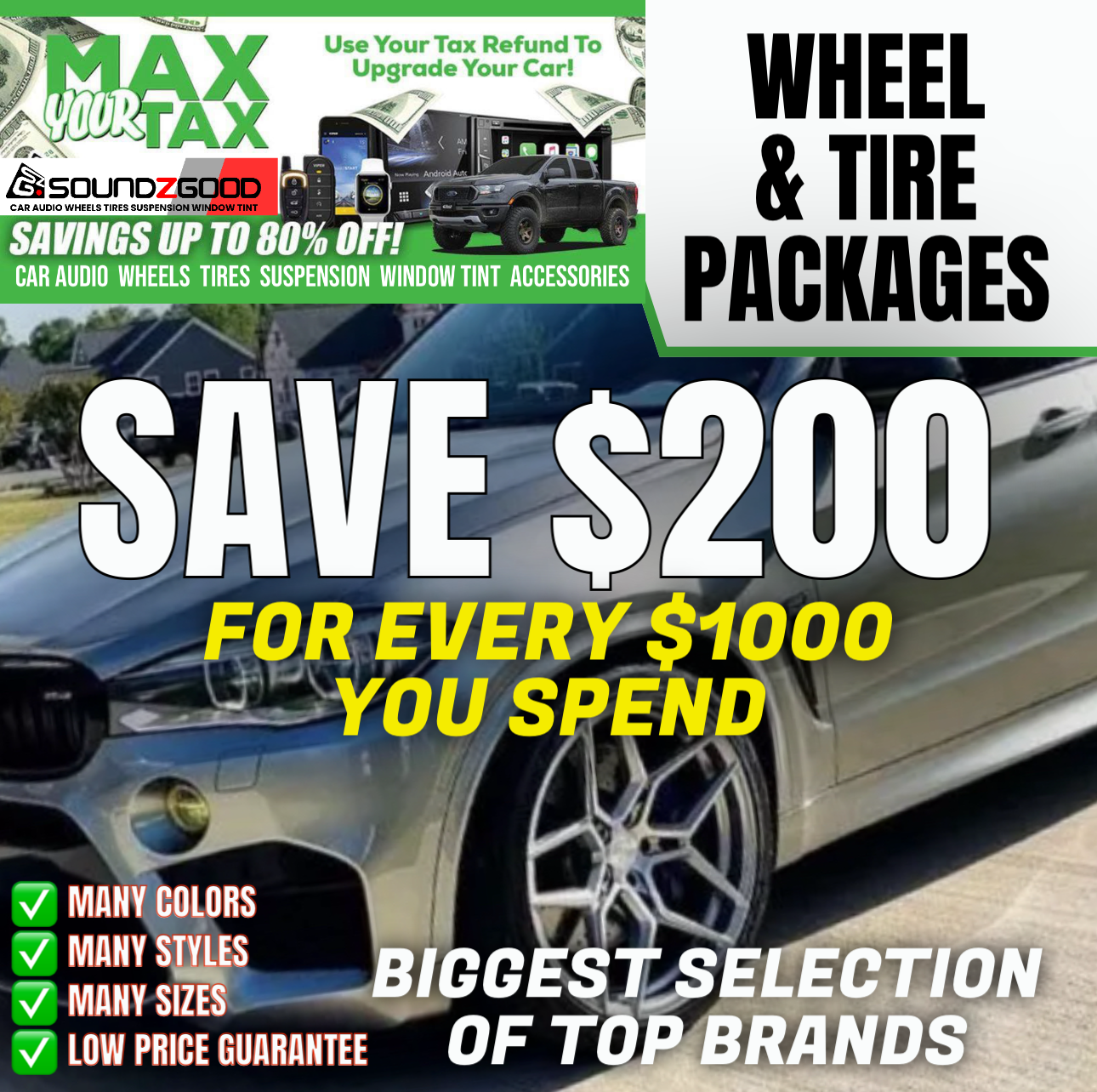 At Soundz Good Garage, we are dedicated to bringing you the best Wheels & Tires options to enhance your vehicle’s appearance and performance. Our premium products are engineered to improve handling, increase traction, and ensure a smooth ride, whether you’re on the highway or off-road. With various styles and sizes available, you can find the perfect combination to match your vehicle’s needs and your personal taste.